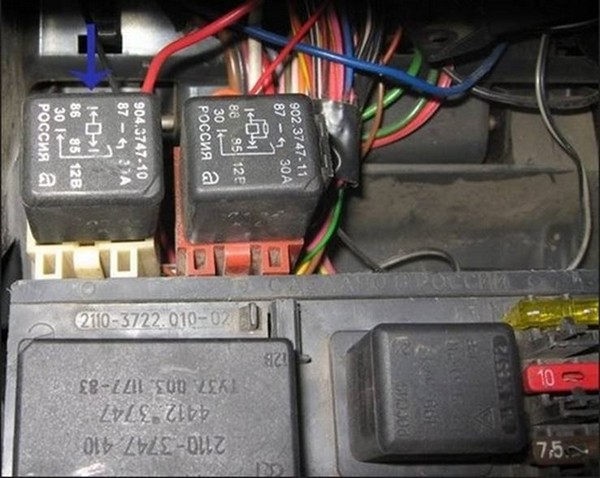 - Проверьте в блоке предохранителей ВАЗ-2110 соответствующую плавкую вставку. Если даже при установке нового реле не происходит включение, то нужно искать неисправность в цепи питания. Замените предохранитель на новый. В том случае, если он перегорает очень быстро, то потребуется найти, в каком месте электрической проводки происходит короткое замыкание.