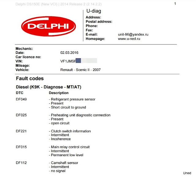Delphi DS150e: сканируем Renault Scenic II 2007 г.в.